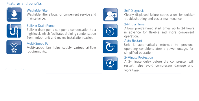 The YORK” line of Cassette Air Conditioners includes a wide range of sizes to give you more flexibility in your product offering. Each model is designed to provide comfort and efficiency, in an easy—to—operate unit and the sleek design fits a variety of spaces, whether it’s in a home or office. Models meet the highest energy efficiency ratings, so less energy is consumed without sacrificing comfort and performance. Both the condensing and indoor units are engineered for quiet operation. And comfort control settings are easily changed with the touch of a button on the remote control.