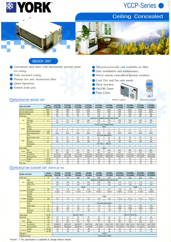 Điều hòa âm trần nối ống gió YCCP - Thái Lan